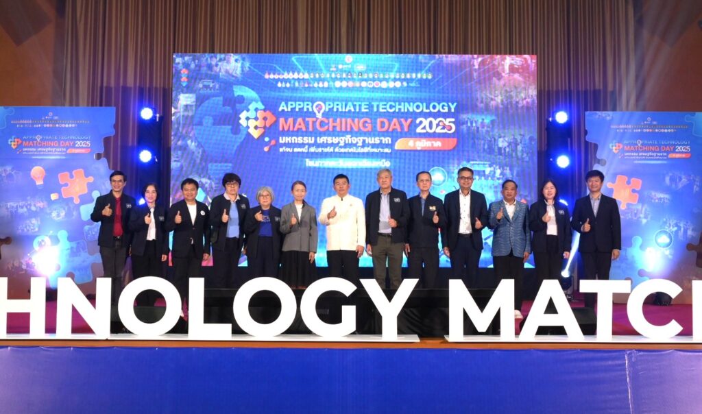 เมื่อวันที่ 19 ตุลาคม 2568 หน่วยบริหารและจัดการทุนด้านการพัฒนาระดับพื้นที่ (บพท.) ร่วมกับเครือข่ายมหาวิทยาลัยราชภัฏ จำนวน 11 แห่ง เครือข่ายมหาวิทยาลัยเทคโนโลยีราชมงคลจำนวน 3 แห่ง กลุ่มมหาวิทยาลัยเพื่อพัฒนาพื้นที่ จำนวน 8 แห่ง และหน่วยสังเคราะห์และขับเคลื่อนแพลตฟอร์มสร้างรายได้ครัวเรือนด้วยเทคโนโลยีที่เหมาะสมกับชุมชนสู่การใช้ประโยชน์และยกระดับเศรษฐกิจฐานราก มหาวิทยาลัยเทคโนโลยีราชมงคลธัญบุรี จัดงานมหกรรมเศรษฐกิจฐานราก:แก้จน ลดหนี้ เพิ่มรายได้ ด้วยเทคโนโลยีที่เหมาะสมปี 2568 หรืองาน “Apptech Matching Day 2025” ซึ่งเป็นหนึ่งในการขยายผลจากกรอบการวิจัยการขยายผลวิจัยเทคโนโลยีที่เหมาะสม (Appropriate Technology) เพื่อยกระดับรายได้ครัวเรือนและยกระดับเศรษฐกิจฐานราก ประจำปีงบประมาณ 2568 อันเป็นแพลตฟอร์ม (Platform) สำคัญในการขับเคลื่อนเศรษฐกิจฐานราก ด้วยกองทุนส่งเสริมวิทยาศาสตร์ วิจัย และนวัตกรรม (ววน.)