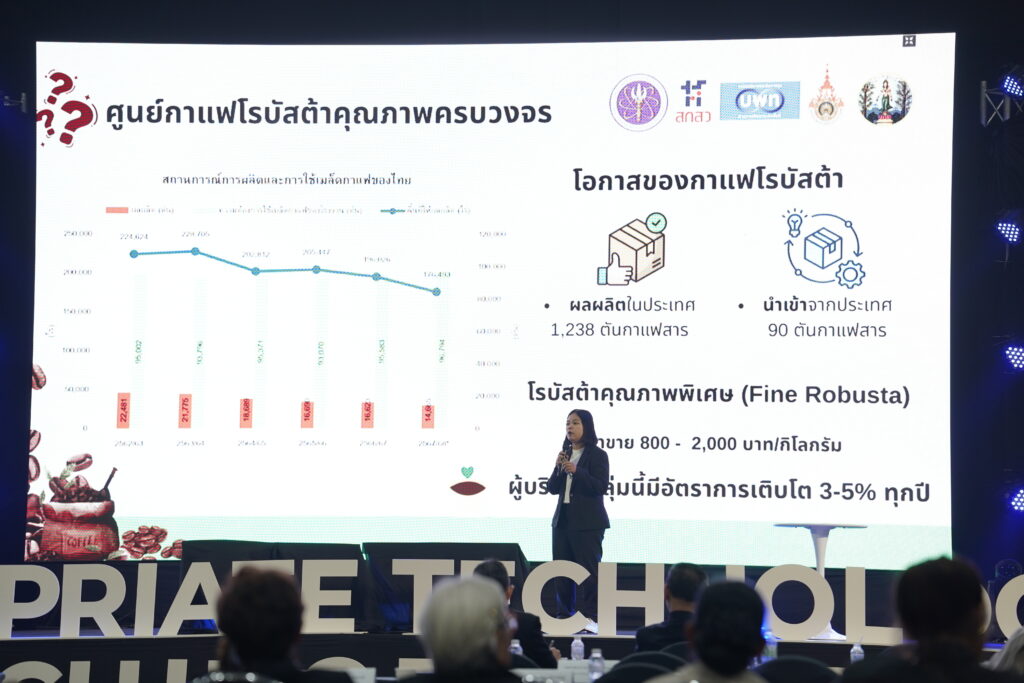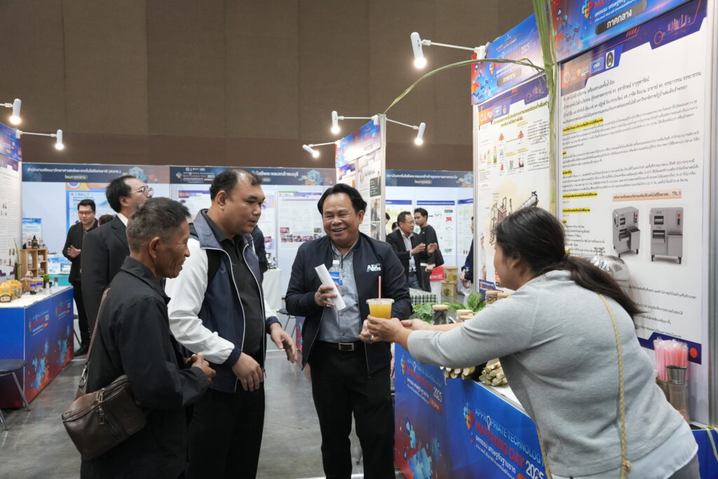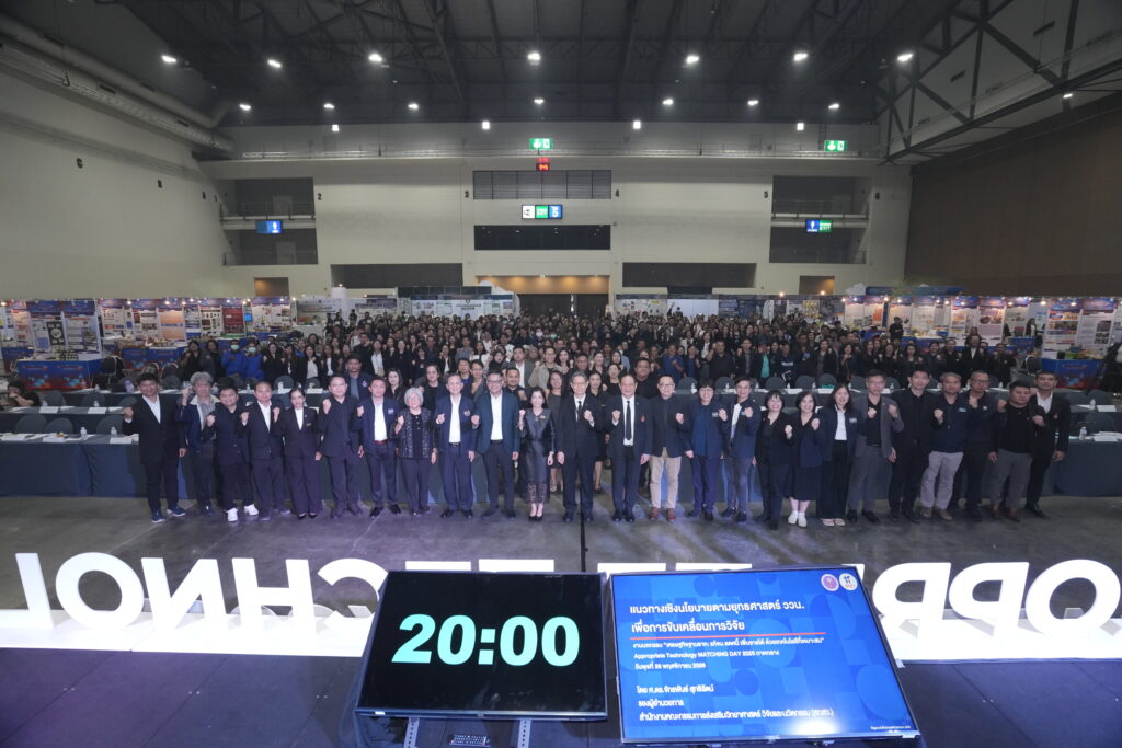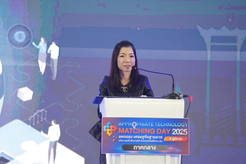 นางสาวพิมพ์พร ชีวานันท์ เลขานุการรัฐมนตรีว่าการกระทรวงการอุดมศึกษา วิทยาศาสตร์ วิจัยและนวัตกรรม (อว.) ที่ให้เกียรติเป็นประธานเปิดงานในวันนี้ กล่าวว่า “งานในวันนี้เป็นการนำเทคโนโลยีที่เหมาะสมและพร้อมใช้ไปช่วยพัฒนาชุมชน สร้างอาชีพ กระจายรายได้ และเสริมความสามารถในการพึ่งพาตนเองอย่างยั่งยืน สอดคล้องกับนโยบายของคุณสุรศักดิ์ พันธ์เจริญวรกุล รัฐมนตรีว่าการกระทรวงการอุดมศึกษา วิทยาศาสตร์ วิจัยและนวัตกรรม (กระทรวง อว.) ที่ได้มุ่งผลักดันนโยบาย “วิจัยติดดิน นวัตกรรมยกระดับเศรษฐกิจฐานรากทั่วไทย” เพื่อให้ผลงานวิจัยและเทคโนโลยีต่าง ๆ นำไปยกระดับคุณภาพชีวิตประชาชน ส่งเสริมเศรษฐกิจและสังคมในพื้นที่ แก้ไขปัญหาสิ่งแวดล้อม และตอบสนองต่อความต้องการของประชาชนอย่างรวดเร็วและตรงจุด”