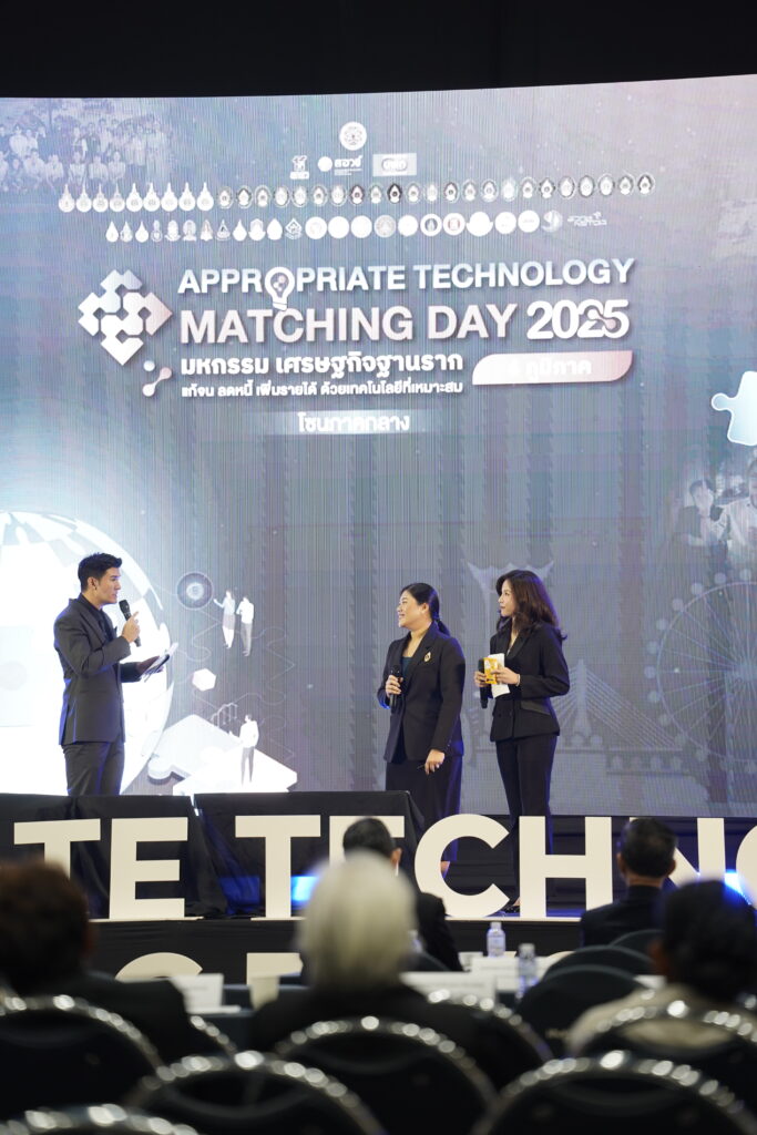 นางสาวพิมพ์พร ชีวานันท์ เลขานุการรมว.อว. กล่าวต่อว่า “จากการสานพลังของหน่วยงานต่างๆ ในสังกัดกระทรวง อว. ทำให้เกิดการพัฒนา “ระบบข้อมูล Technology and Innovation Library” ที่รวบรวมเทคโนโลยีที่เหมาะสมมากถึง 3,598 เทคโนโลยี เพื่อให้สามารถตอบโจทย์ความต้องการของพื้นที่ และนำองค์ความรู้เหล่านี้ไปประยุกต์ใช้แก้ไขปัญหาและสร้างโอกาสให้ชุมชนเติบโตอย่างยั่งยืนกระทรวง อว. จึงพร้อมสนับสนุนงานวิจัยตั้งแต่ต้นน้ำสู่การใช้ประโยชน์จริง นำนวัตกรรมพร้อมใช้และเทคโนโลยีที่เหมาะสมลงสู่พื้นที่ เพื่อช่วยกลุ่มฐานราก เกษตรกรรายย่อยผู้ประกอบการ และกลุ่มอาชีพต่าง ๆ ให้มีคุณภาพชีวิตที่ดีขึ้นและขยายผลการใช้เทคโนโลยีที่เหมาะสมไปแก้ปัญหาให้กับชุมชนทั่วประเทศต่อไป”