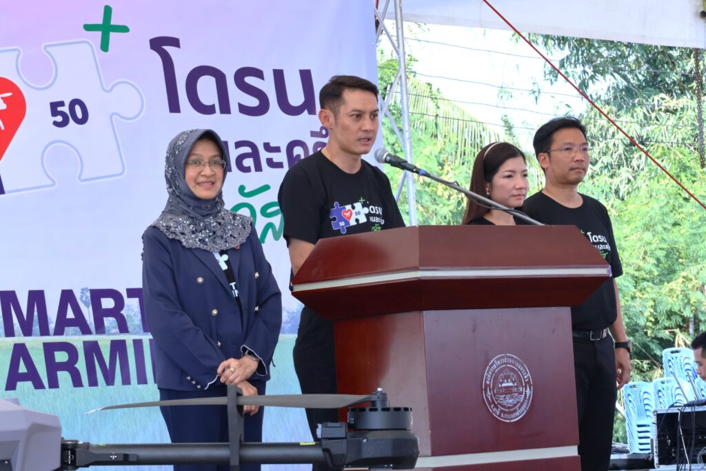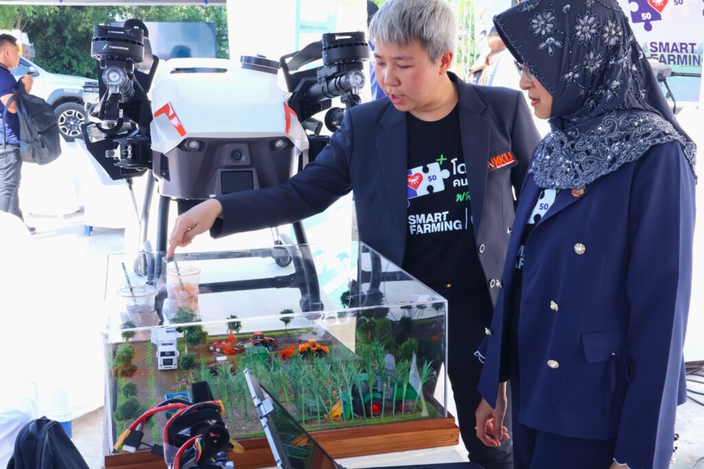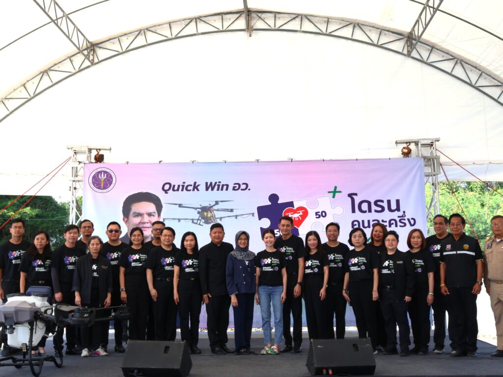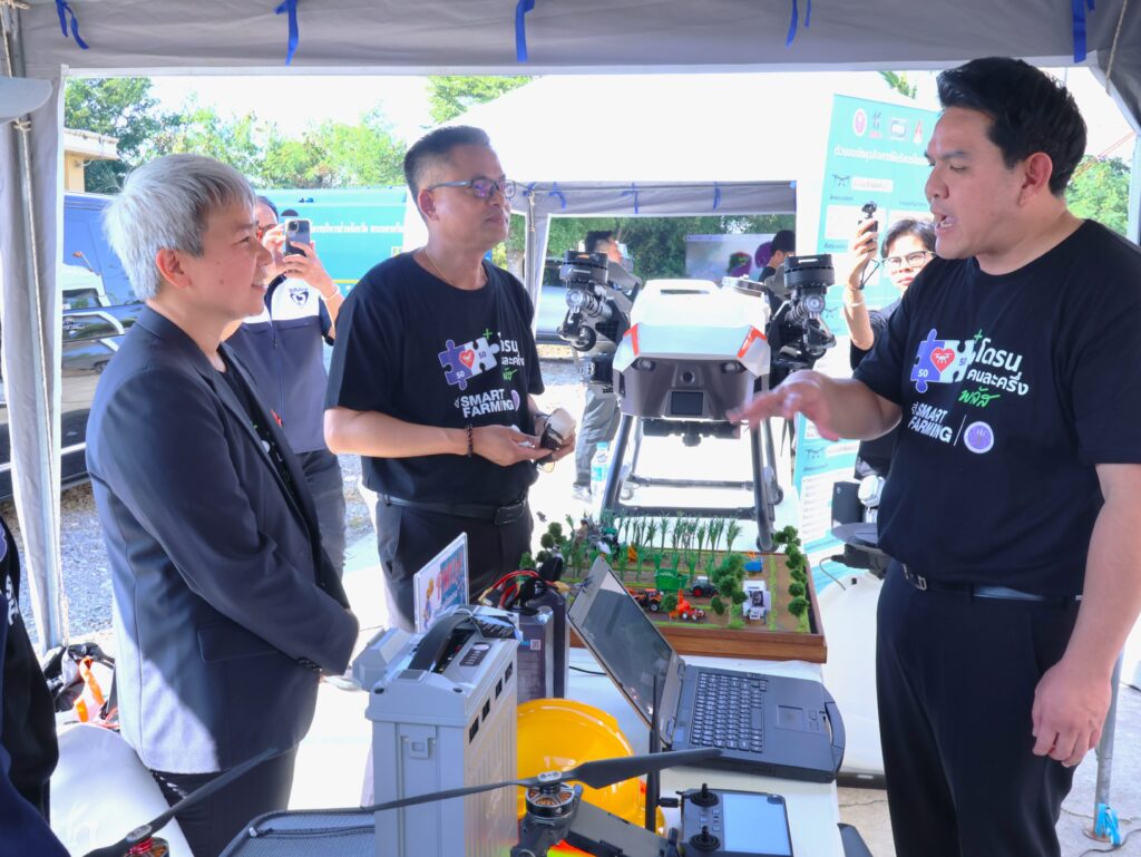 นายสุรศักดิ์ มอบหมายให้ นายพิษณุ พลธี ที่ปรึกษา รมว.กระทรวง อว. พญ.เพชรดาว โต๊ะมีนา ผู้ช่วย รมต.กระทรวง อว. น.ส.พิมพ์พร ชีวานันท์ เลขานุการ รมว.กระทรวง อว. ร่วมกันกล่าวเปิดงานโดยนายพิษณุ กล่าวว่า “โดรนคนละครึ่งพลัส สู่สมาร์ทฟาร์มมิ่ง” เป็นโครงการสำคัญของกระทรวง อว. ซึ่งจะเป็นประโยชน์กับเกษตรกรและพี่น้องประชาชนโดยตรง เพื่อยกระดับคุณภาพชีวิตเกษตรกร เพิ่มประสิทธิภาพเพิ่มรายได้และลดต้นทุนการผลิต ทั้งยังช่วยประหยัดเวลาและแรงงานในการทำงาน เช่น การฉีดพ่นสารเคมี, การให้ปุ๋ย, หรือการหว่านเมล็ด ที่สำคัญเป็นการลดการใช้สารเคมีและปุ๋ยเนื่องจากการควบคุมที่แม่นยำ ทำให้สามารถประเมินและจัดการการใช้ได้อย่างคุ้มค่ามากขึ้น ส่งผลให้คุณภาพและปริมาณของผลผลิตเพิ่มขึ้นและสามารถเข้าถึงพื้นที่เพาะปลูกที่ยากลำบากได้