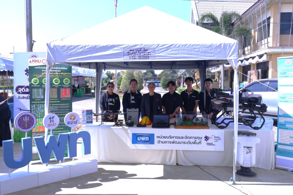 ในการนี้ รศ.ดร.ขวัญศรี แสงประชาธนารักษ์ คณะวิศกรรมศาสตร์ มหาวิทยาลัยขอนเก่น หัวหน้าโครงการการพัฒนาโมเดลธุรกิจโดรนเกษตรชุมชน ภายใต้ทุนสนับสนุนโครงการวิจัยจากหน่วย บพท. ประจำปีงบประมาณ 2568 รศ.ดร.ขวัญศรี กล่าวแสดงความรู้สึกยินดีเป็นอย่างมากที่ได้เข้าร่วมนโยบายของ นายสุรศักดิ์ พันธ์เจริญวรกุล รมว. อว. ในโครงการ “โดรนคนละครึ่งพลัส สู่สมาร์ทฟาร์มมิ่ง” นี้ ผ่านความร่วมมือระหว่างกระทรวง อว. – หน่วย บพท. พร้อมหน่วยงานในสังกัดกระทรวงฯ ตนมองเป็นความร่วมมือที่สำคัญอย่างยิ่งต่อการพัฒนาเกษตรกรไทยและยกระดับการพัฒนาพื้นที่ได้ เพราะปัจจุบันนวัตกรรมและเทคโนโลยีกับอาชีพทางการเกษตรถือว่ามีความทันสมัย มีประสิทธิภาพ เป็นนวัตกรรมสามารถช่วยเหลือทุนแรงชาวนา ลดต้นทุน และค่าใช้จ่ายให้แก่เกษตรได้จริง ดังนั้น เกษตรกรจึงจำเป็นต้องได้รับ Upskill และ Reskill เพื่อประยุกต์ใช้เทคโนโลยีและกระตุ้นให้เกิดการใช้งานแก่เกษตรรุ่นใหม่ เพื่อการเสริมสร้างอาชีพและตอบสนองความต้องการของภาคเกษตรสมัยใหม่ในยุคปัจจุบันอย่างแท้จริง