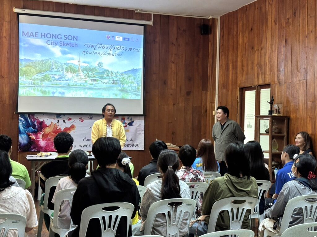 กิจกรรม Urban Sketching ไม่ได้เป็นเพียงการวาดภาพ หากแต่เป็นการ “สนทนากับเมือง” ผ่านปลายดินสอเยาวชนและคนในพื้นที่ที่นั่งนิ่งอยู่ท่ามกลางสถาปัตยกรรมเก่า วิถีชีวิต และผู้คน ก่อนจะถ่ายทอดออกมาเป็นเส้นสายและสีสันที่เต็มไปด้วยความรู้สึกภาพวาดเหล่านั้น ไม่ได้เพียงบอกเล่าความงดงามของแม่ฮ่องสอน แต่ยังสะท้อนความผูกพัน ความทรงจำ และตัวตนของเมืองที่กำลังถูกค้นพบใหม่อีกครั้ง