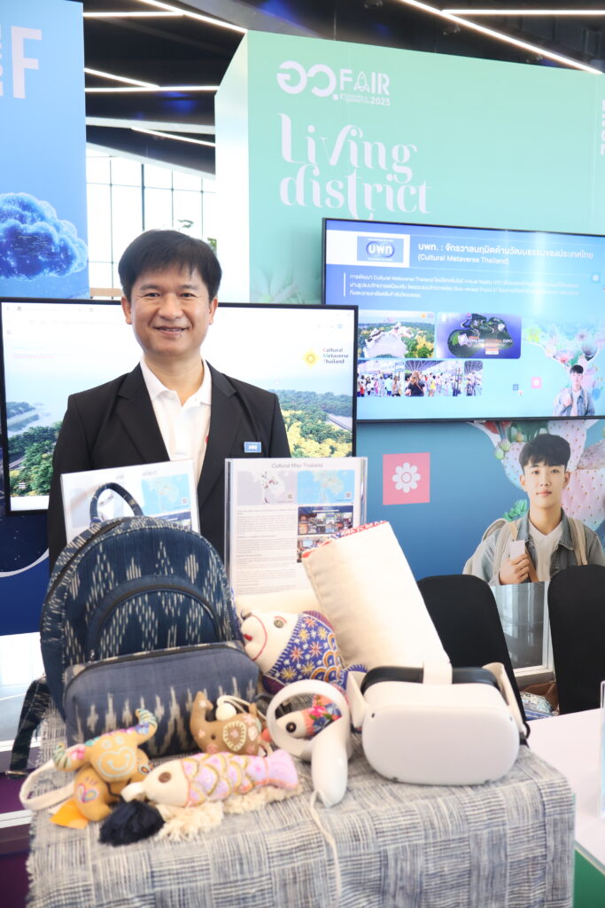 การนี้ หน่วย บพท. นำโดย รศ.ดร.อุเทน คำน่าน รองผู้อำนวยการหน่วยบริหารและจัดการทุนด้านการพัฒนาระดับพื้นที่ ฝ่ายบริหารจัดการทุนวิจัยและนวัตกรรม ร่วมนำผลงานมหกรรมทุนวัฒนธรรม สืบสาน สร้างสรรค์พลังทุนวัฒนธรรมสู่เศรษฐกิจยั่งยืน อย่าง Culture Metaverse Thailand (ระบบจักรวาลนฤมิต) เป็นการจำลองนิทรรศการเสมือน Virtual Thailand Cultural Expo แบ่งพื้นที่ด้วยการจำลองลักษณะภูมิประเทศ 4 ภาค นับเป็นนวัตกรรมใหม่ที่ผสานวัฒนธรรมเข้ากับเทคโนโลยี เพื่อส่งเสริมเศรษฐกิจสร้างสรรค์และการเข้าถึงทุนวัฒนธรรมในรูปแบบดิจิทัล และ Culture Connex (ผลิตภัณฑ์วัฒนธรรม) ซึ่งเป็นผลผลิตจากโครงการวิจัยด้านทุนทางวัฒนธรรม ปัจจุบันถูกจัดจำหน่ายที่โชว์รูมที่จัดแสดงและจำหน่ายผลิตภัณฑ์ทางวัฒนธรรมที่มาจากความร่วมมมือระหว่างมหาวิทยาลัยกับชุมชน ช่างฝีมือท้องถิ่น ศิลปิน และผู้ประกอบการวัฒนธรรม ณ ชุมชนเลื่อนฤทธิ์ ถนนเยาวราช กรุงเทพฯ โดยมีกลุ่มเป้าหมายเป็นชาวไทยและชาวต่างชาติ เพื่อให้เกิดระบบบริหารจัดการกลางที่นำไปสู่การเป็นธุรกิจเพื่อสังคมต่อไปในอนาคต โดยผลงานทั้ง 2 โครงการ ได้รับการสนับสนุน