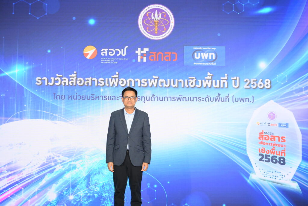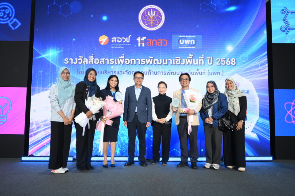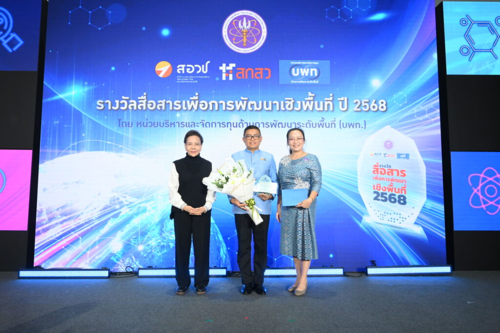 บพท.มอบ 16 รางวัลสื่อสารเพื่อการพัฒนาเชิงพื้นที่ปี 2568 แก่นักวิจัย-นวัตกร-หน่วยราชการ-สื่อมวลชน-ประชาสังคม ที่มีผลงานสื่อสารข้อมูลความรู้ งานวิจัยที่เป็นประโยชน์ต่อการพัฒนาเศรษฐกิจ สังคม คุณภาพชีวิต และสิ่งแวดล้อมในพื้นที่